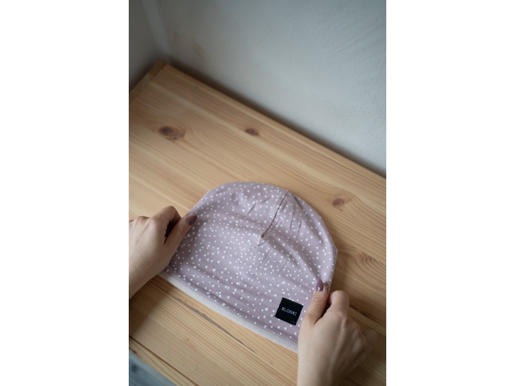 - Čepice jsou ušity z dvouvrstvé látky (úplet a fleece)